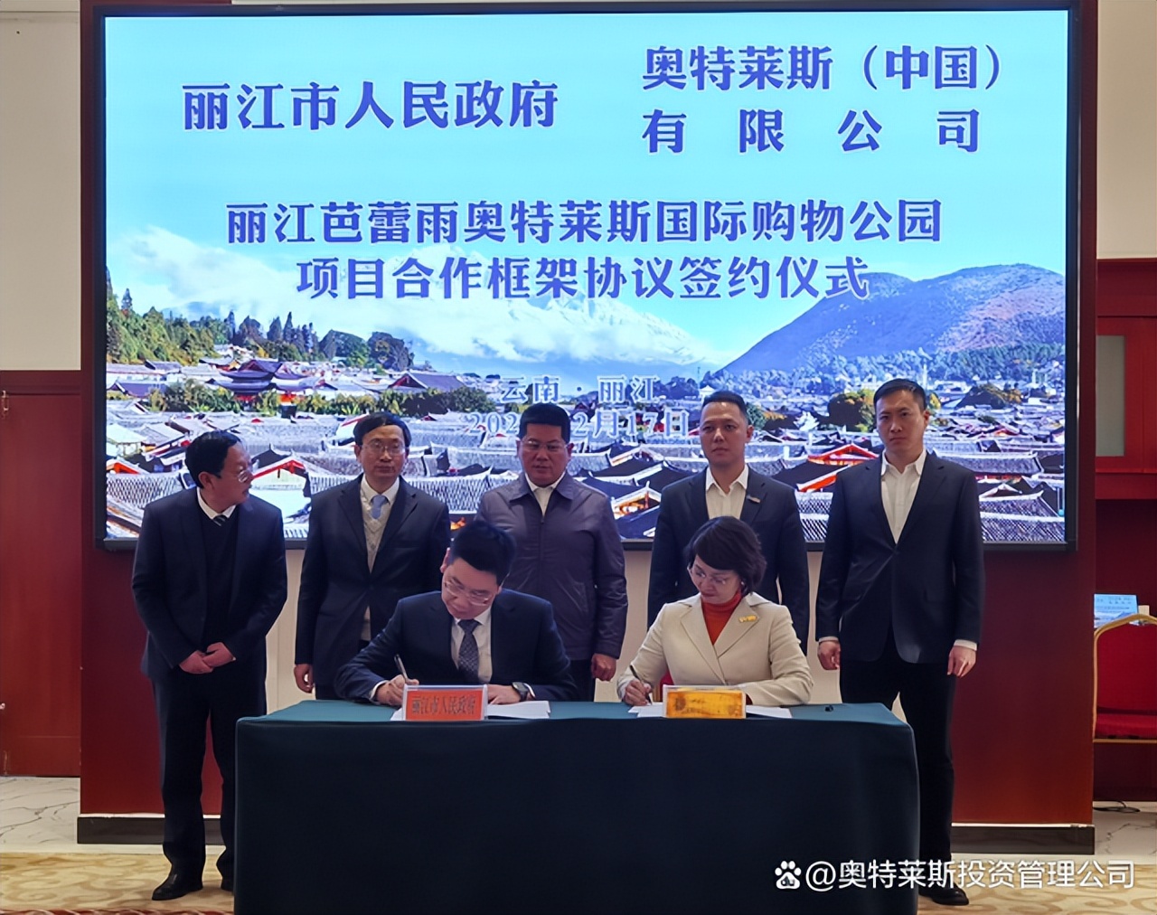 2月17日,奧特萊斯(中國(guó))有限公司總裁拜訪麗江市政府,與麗江市蘇永忠市長(zhǎng)在麗江座談,并見(jiàn)證《麗江芭蕾雨奧特萊斯國(guó)際購(gòu)物公園項(xiàng)目合作框架協(xié)議》的簽署。奧特萊斯(中國(guó))助理總裁李曉薩、投資拓展中心總經(jīng)理周毅,以及麗江市政府、市發(fā)改委、市投資促進(jìn)局、市住房和建設(shè)局、市文旅局、玉龍雪山管委會(huì)、玉龍縣政府等主要領(lǐng)導(dǎo)參會(huì)。