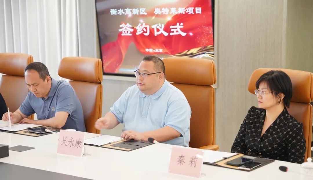 簽約儀式上,衡水高新區(qū)科技創(chuàng)新中心主任駱妍與奧特萊斯(中國(guó))副總裁秦莉代表雙方正式簽約。