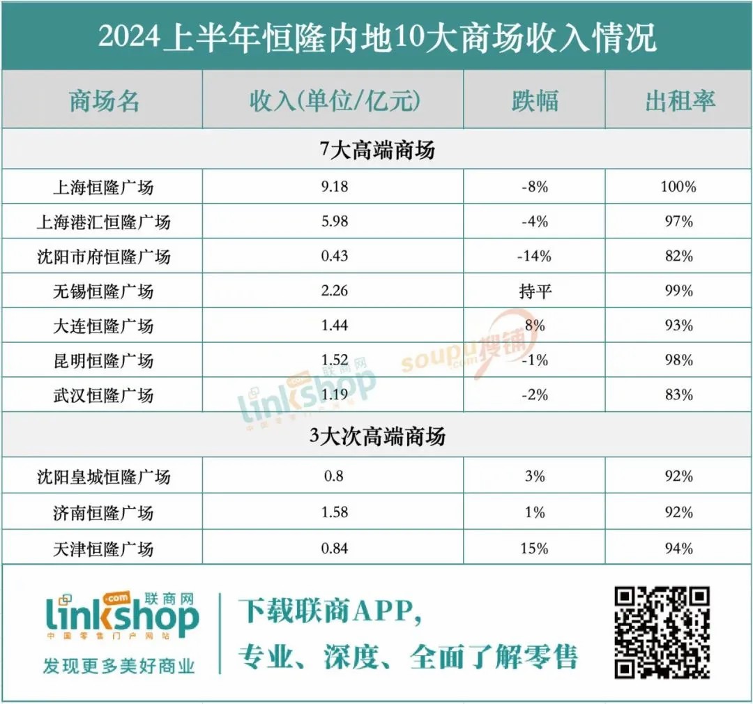 特別值得注意的是,恒隆集團在內地的市場表現(xiàn)尤為嚴峻。內地整體租賃收入同比下滑了4%,而租戶銷售額更是大幅下滑了13%,這些數(shù)據清晰地反映了內地奢侈品消費市場的疲軟態(tài)勢。具體到零售物業(yè)方面,恒隆在內地的商場組合收入也在2024上半年遭遇了3%的下滑,進一步凸顯了內地市場面臨的挑戰(zhàn)。這一趨勢不僅影響了恒隆的短期業(yè)績,也可能對其長期戰(zhàn)略布局和市場信心產生深遠影響。