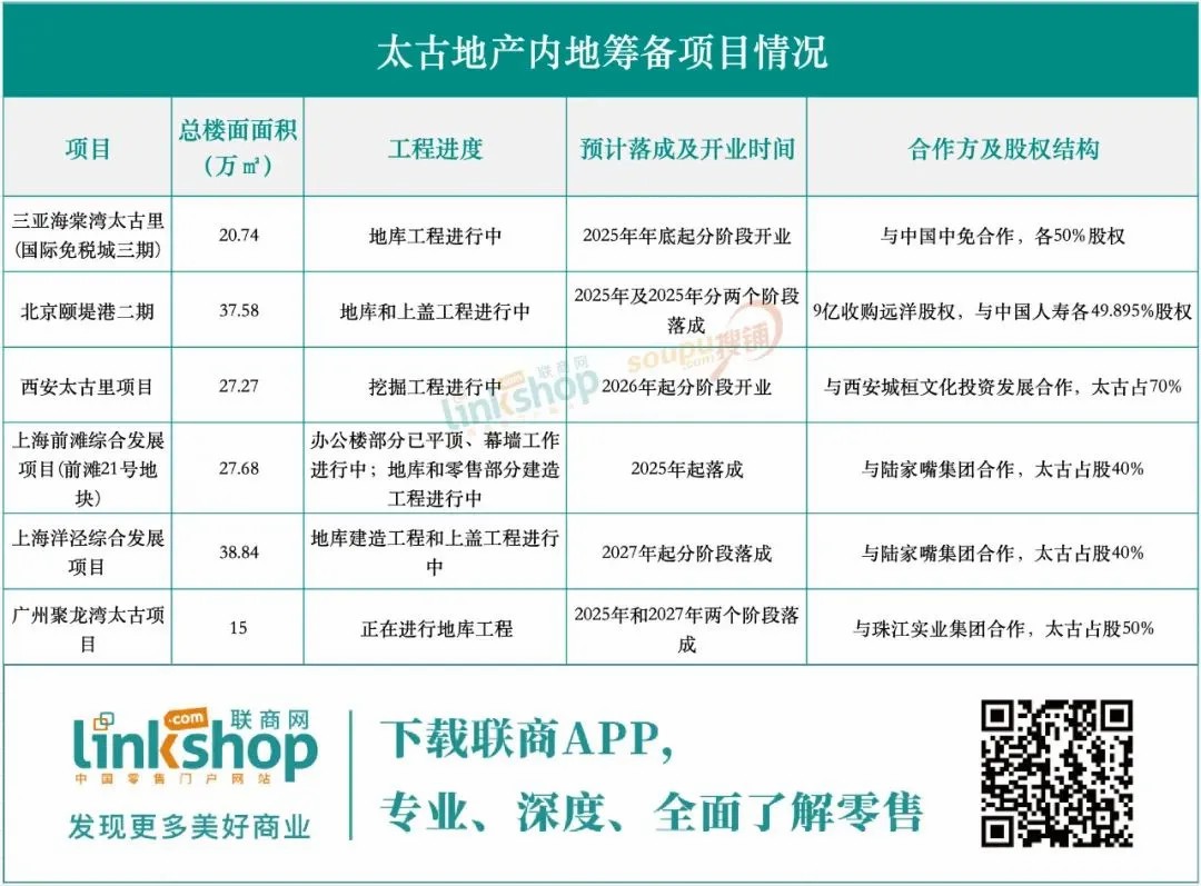 截至2024年8月2日的最新財報顯示,太古地產原先規(guī)劃的1000億港幣投資計劃中,已有650億港幣成功落地實施,其中對內地市場的投資占據了顯著比例,達到了約440億港幣。在過去兩年內,太古地產加速了在內地市場的布局,成功在西安、三亞、廣州和上海四大城市推進了五個零售綜合發(fā)展項目,彰顯了其深耕內地市場的決心與行動力。
