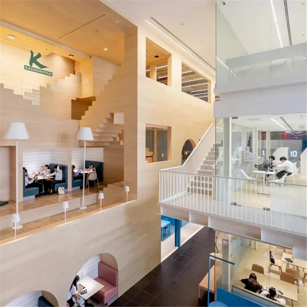 SAMYAN CO-OP是購(gòu)物中心二樓的共享空間,含5個(gè)獨(dú)立又相連的建筑,設(shè)自習(xí)室、討論室、會(huì)議室等,對(duì)外開(kāi)放租賃。一樓售日常用品,二樓為生活服務(wù)類店鋪,三樓融合泰國(guó)傳統(tǒng)與現(xiàn)代藝術(shù)風(fēng)格的空間。