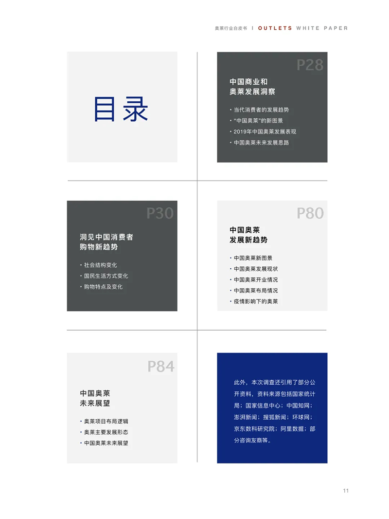 為了及時(shí)總結(jié)中國(guó)奧萊的發(fā)展?fàn)顩r和運(yùn)營(yíng)經(jīng)驗(yàn),引導(dǎo)中國(guó)奧特萊斯產(chǎn)業(yè)在后疫情時(shí)代的健康、快速發(fā)展,我們組織編寫了這部《2020中國(guó)奧特萊斯行業(yè)白皮書(shū)》。我們基于對(duì)后疫情時(shí)代中國(guó)經(jīng)濟(jì)的內(nèi)生動(dòng)力,以及中國(guó)消費(fèi)格局、消費(fèi)趨勢(shì)新變化的深?分析,并通過(guò)線上問(wèn)卷調(diào)查與線下深度訪談相結(jié)合的方式,客觀分析了中國(guó)奧特萊斯的發(fā)展表現(xiàn),綜合闡述了中國(guó)奧特萊斯的未來(lái)發(fā)展思路。