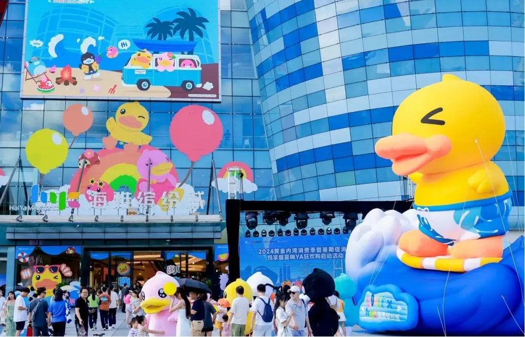 時(shí)值暑期,深圳海雅繽紛城邀請B.Duck品牌創(chuàng)辦人“鴨爸爸”許夏林,以及市/區(qū)商務(wù)局、中山商務(wù)局、新安街道辦、市零售商業(yè)行業(yè)協(xié)會(huì)等官方代表,共同開啟了2024黃金內(nèi)灣消費(fèi)季暨暑期促消費(fèi)——悅享盛夏嗨Ya狂歡購系列活動(dòng)的序幕,成功完成中國第一自主IP B.DUCK小黃鴨的“B.DUCK嗨YA狂歡節(jié)全國首展”。