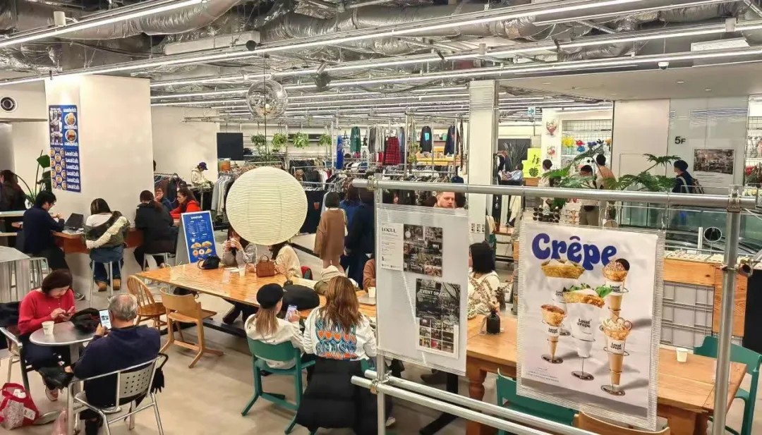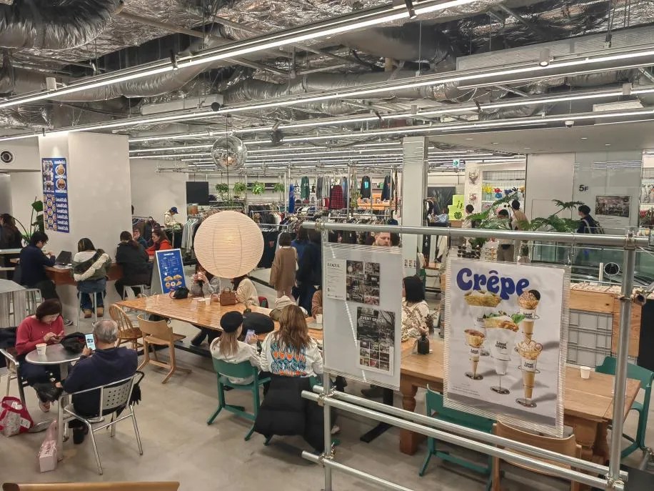 在東京的一座Tokyu Plaza中,就見到其舍棄半層經(jīng)營面積,打造出公共休閑空間。當(dāng)然,所謂“舍棄”也并非完全屏蔽零售商品售賣,只是有取舍地將更能豐富消費(fèi)者游逛體驗(yàn)的特定零售品類包羅其中。這些商品或品牌的陳列更像是美陳道具,沒有出跳的展柜與收銀臺(tái),總能讓進(jìn)場顧客在不經(jīng)意間隨手拿起挑選。