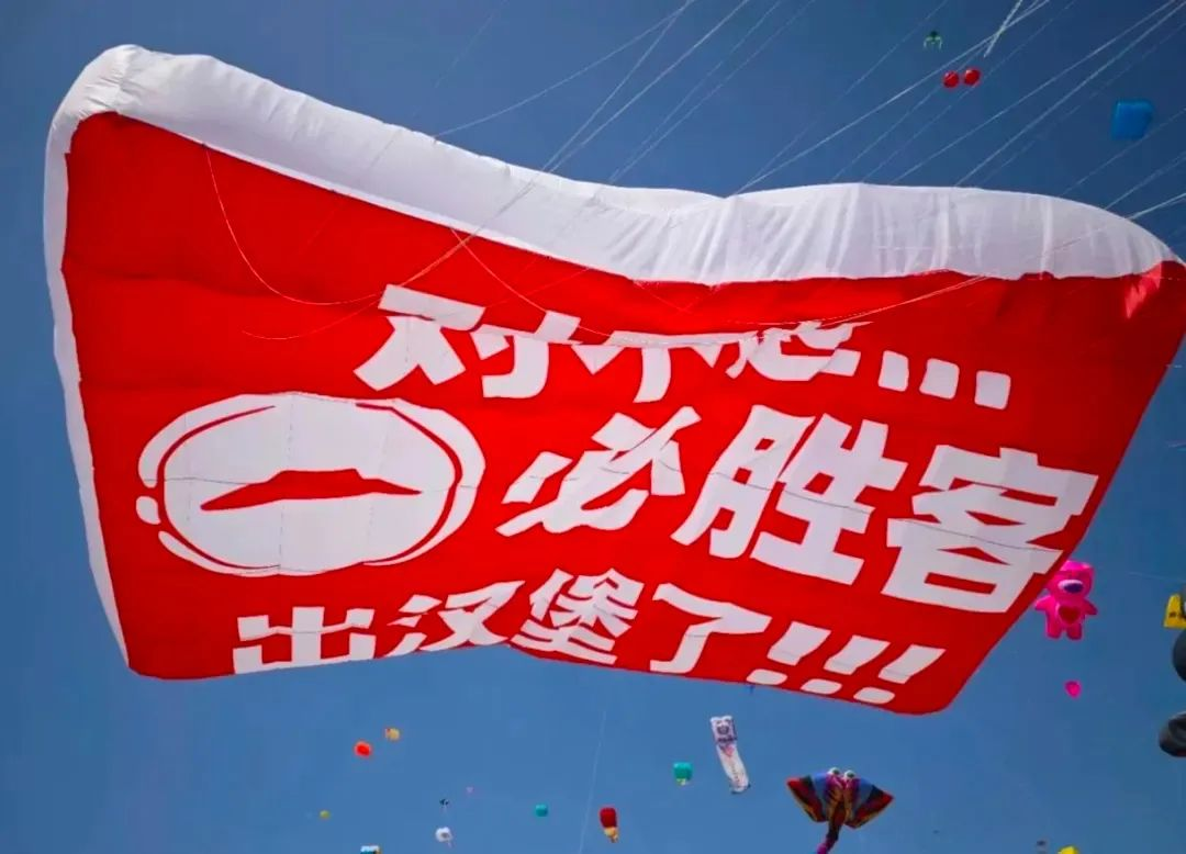 去年的風箏節(jié),眾多品牌紛紛參與“發(fā)瘋營銷”的浪潮,將這一傳統(tǒng)活動推向了新的高峰。在風箏節(jié)期間,淘寶連續(xù)兩年推出的巨型“放屁”風箏成為焦點。這種打破常規(guī)、充滿娛樂性的廣告方式,不僅吸引了眾多目光,更讓年輕人在歡笑中釋放了壓力。而必勝客則通過簡潔的大字報形式,宣布“必勝客推出漢堡”,這種直接而簡單的營銷手段,同樣給人留下了深刻的印象。