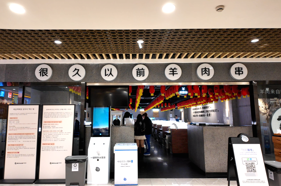 值得一提的是,在國家開放免簽政策,韓國旅客接踵而至,其統(tǒng)一的打卡模式直接帶火了“很久以前羊肉串”,尚未到正式的用餐時(shí)間,該門店前已開始排隊(duì),其中大部分等位人員為韓國游客。他們除了可以在店員的輔助下使用烤爐現(xiàn)烤現(xiàn)吃,還將門店附贈(zèng)的“冰涼貼”作為了打卡的必備項(xiàng)目。