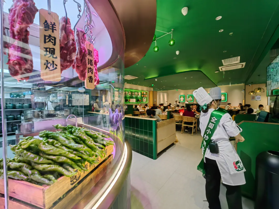 在用餐體驗(yàn)上,費(fèi)大廚辣椒炒肉現(xiàn)炒現(xiàn)做,拒絕預(yù)制菜,每家店配備15名大廚,每人僅負(fù)責(zé)2-3道菜,每鍋僅炒兩份;還首創(chuàng)章丘手工鐵鍋+景德鎮(zhèn)土灶底座保持菜品溫度,翻臺率直線提升。為優(yōu)化客戶體驗(yàn),費(fèi)大廚創(chuàng)新性地將新鮮現(xiàn)煮小鍋米飯、大王冰檸檬茶與辣椒炒肉強(qiáng)勢捆綁。