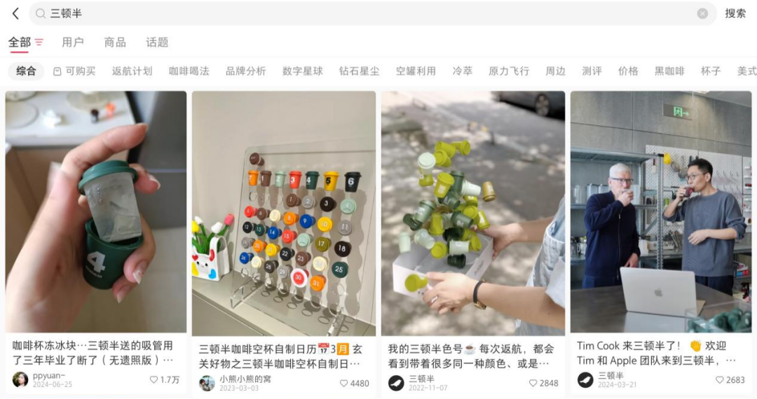 三頓半作為咖啡領(lǐng)域的創(chuàng)新先鋒,其憑借獨(dú)特的小罐咖啡形式,曾在小紅書上掀起了一股咖啡熱潮。眾多美食和飲料主播使用三頓半推出各種創(chuàng)意的咖啡沖泡教程和咖啡與美食搭配的內(nèi)容,如咖啡拿鐵、摩卡星冰樂等,為用戶展示了咖啡的無限可能性。消費(fèi)者也積極響應(yīng),在小紅書上分享自己獨(dú)特的“三頓半空罐創(chuàng)意玩法”,將空罐制作成各種精美的手工飾品,展現(xiàn)了他們對(duì)生活的小巧思和對(duì)品牌的熱愛。此外,三頓半還精心策劃了豐富的營銷活動(dòng),例如“返航計(jì)劃”,該活動(dòng)鼓勵(lì)用戶收集咖啡空罐,并前往指定地點(diǎn)兌換周邊產(chǎn)品或參與線下活動(dòng)。這不僅有效提高了用戶的參與感,還極大地增強(qiáng)了品牌忠誠度。